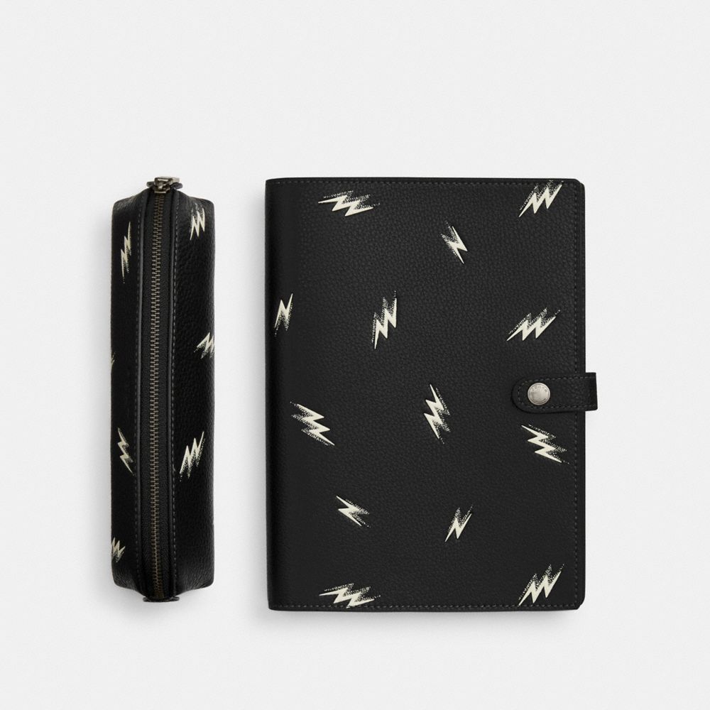 Boxed Notebook And Pencil Case Set With Lightning Bolt Print