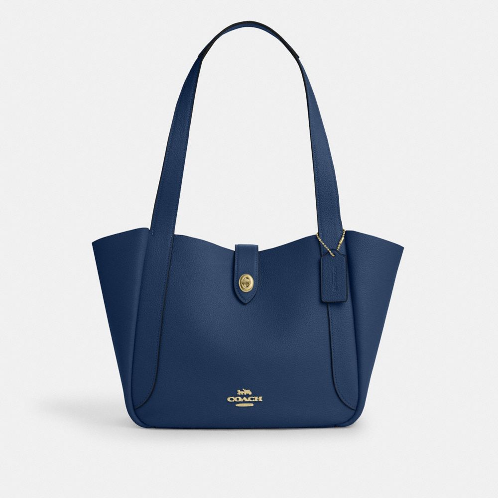 COACH®,Hadley Turnlock Tote Bag,Leather,Tote,Metal,Logo,Gold Plated,Casual,Navy,Angle View