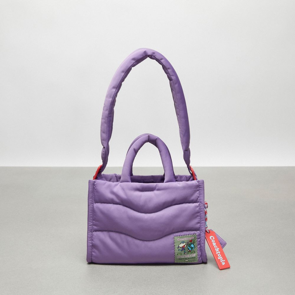 Closed-loop cuteness: our Coachtopia Loop Mini Tote is a compact version of its puffy older sibling, with a shell and lining crafted in 100% recycled PET plastic (rPET). Complete with our trademark decorative patch and a removable strap, it fits a phone, keys, wallet and other essentials.