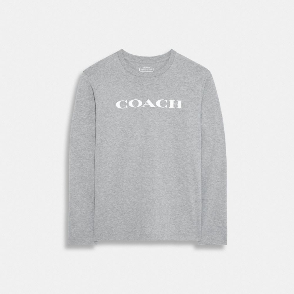 COACH®,Essential Long Sleeve T-Shirt In Organic Cotton,Organic Cotton,T Shirt,Logo,Word Embellishment,Casual,Gray,Scale View