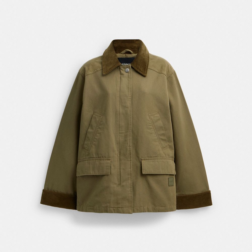 The Field Jacket keeps you prepared and on the go. Crafted of cotton, this women's utility jacket is designed for ultimate comfort. With wide front pockets, it easily carries your essentials—think phone, keys and wallet. This short jacket for women also features a blend of polyester and viscose in the sleeve lining, adding extra durability. Layer it over your outfit for your next commute or wear it on a hike to help keep you dry and warm.