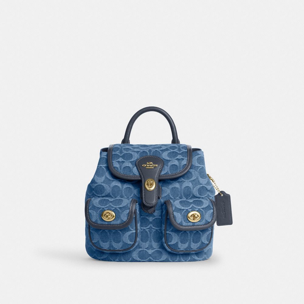 COACH®,Hadley Backpack In Signature Denim,Navy,Front View