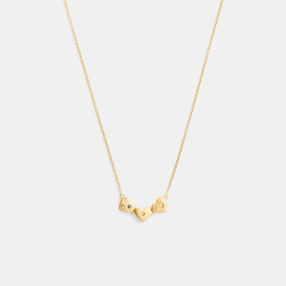 COACH®,Heart Cluster Pendant Necklace,Single Strand,Enamel,Glass,Cubic Zirconia,Gem Embellishment,Logo,Heart Embellishment...,Yellow,Detail View