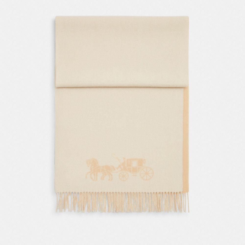 COACH®,Horse And Carriage Double Face Oversized Muffler,Wool,Rectangle,Fringe,Color Block,Casual,Beige,Front View