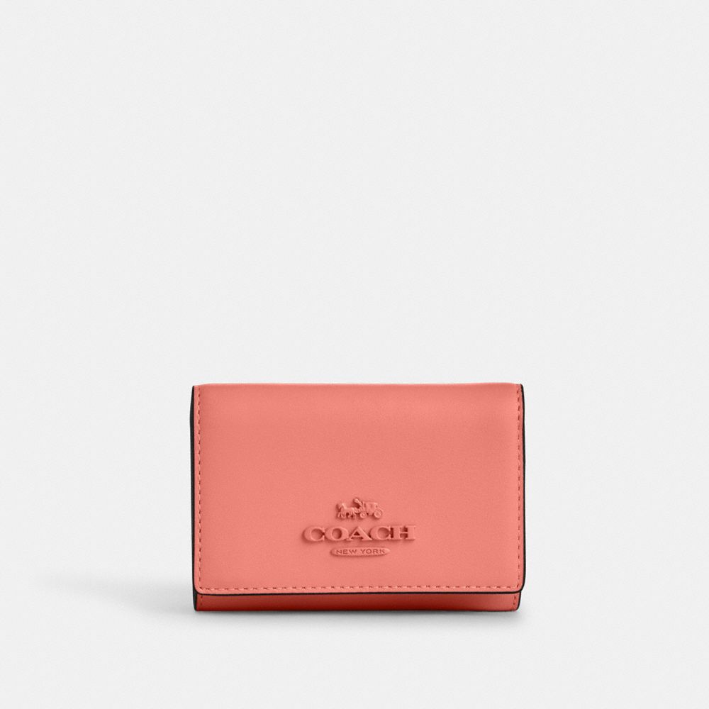The Micro Wallet is crafted of refined calf leather and finished with matching tonal hardware. With enough space to carry your essential cards and cash, this leather micro wallet packs a stylish punch. It features a zip coin pocket, three credit card slots and an easy snap closure. Slip it into your pocket or your go-to bag—its compact size makes it extra convenient.