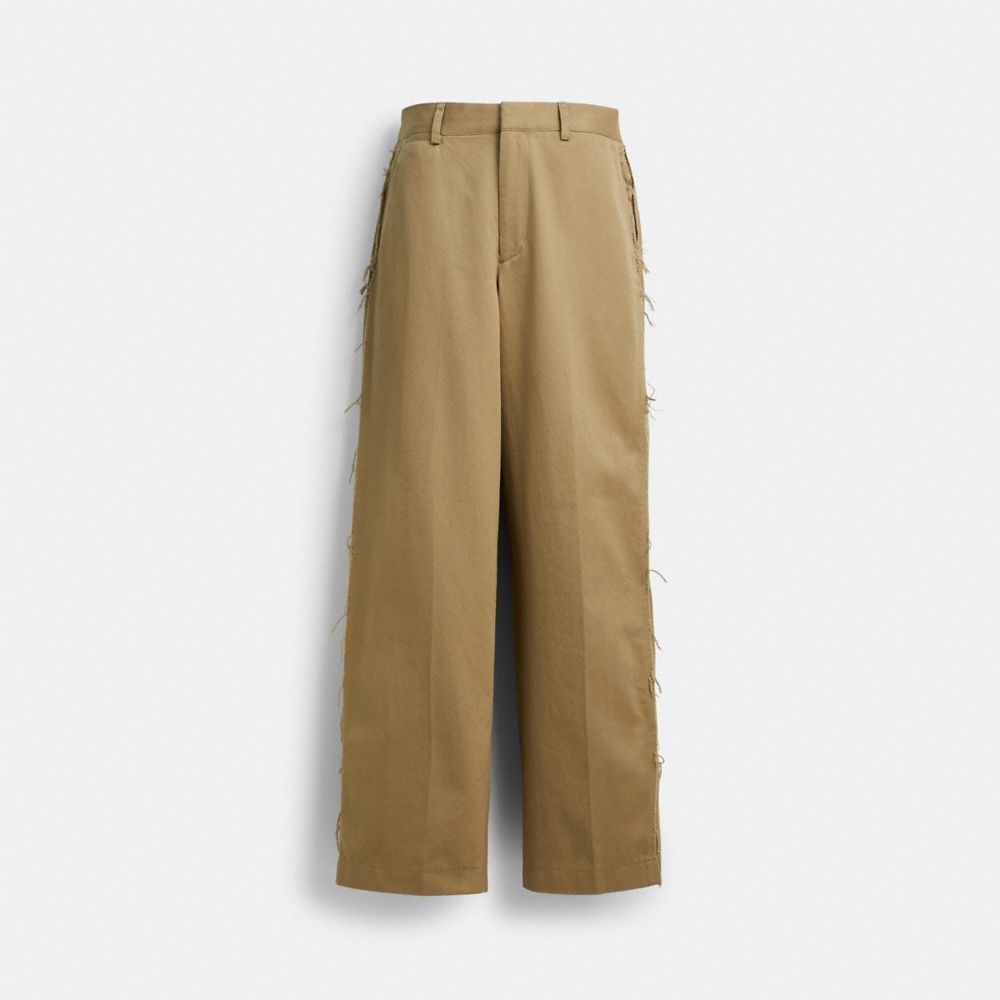Designed with a relaxed fit for comfortable wear, these chino pants are crafted of sturdy cotton. Featuring side panels and exposed seams for a lived-in look, the laid-back silhouette is finished with slip pockets and a woven Coach patch for a subtle heritage touch.