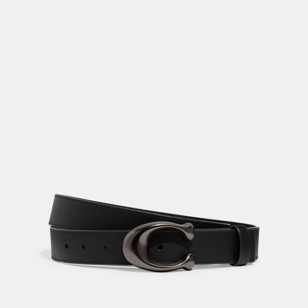 COACH®,Sculpted C Buckle Cut-To-Size Reversible Belt, 32 Mm,Leather,Standard,Logo,Reversible,Gunmetal,Work,Casual,Black,Front View