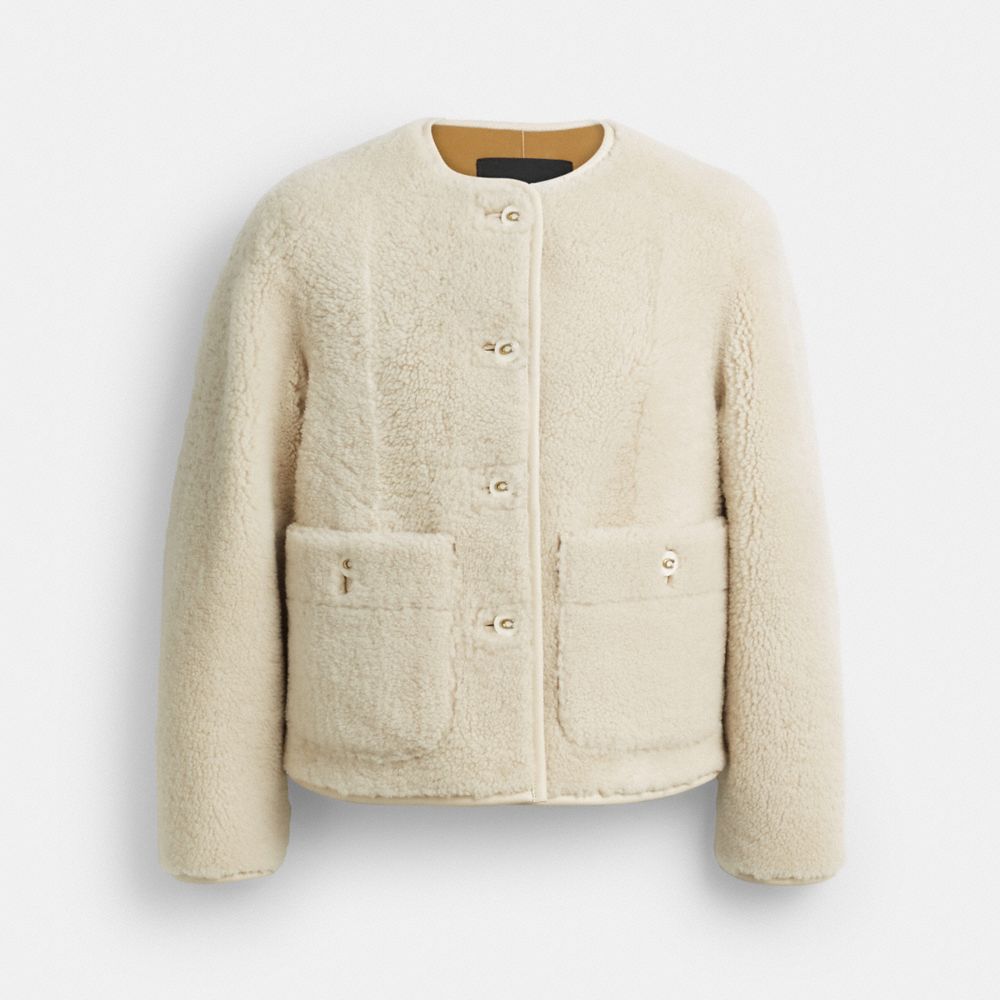 A perfect mix of cozy and chic, this super-soft shearling jacket features large patch pockets and our Signature enamel buttons. The relaxed-fit silhouette is finished with a rounded neckline.
