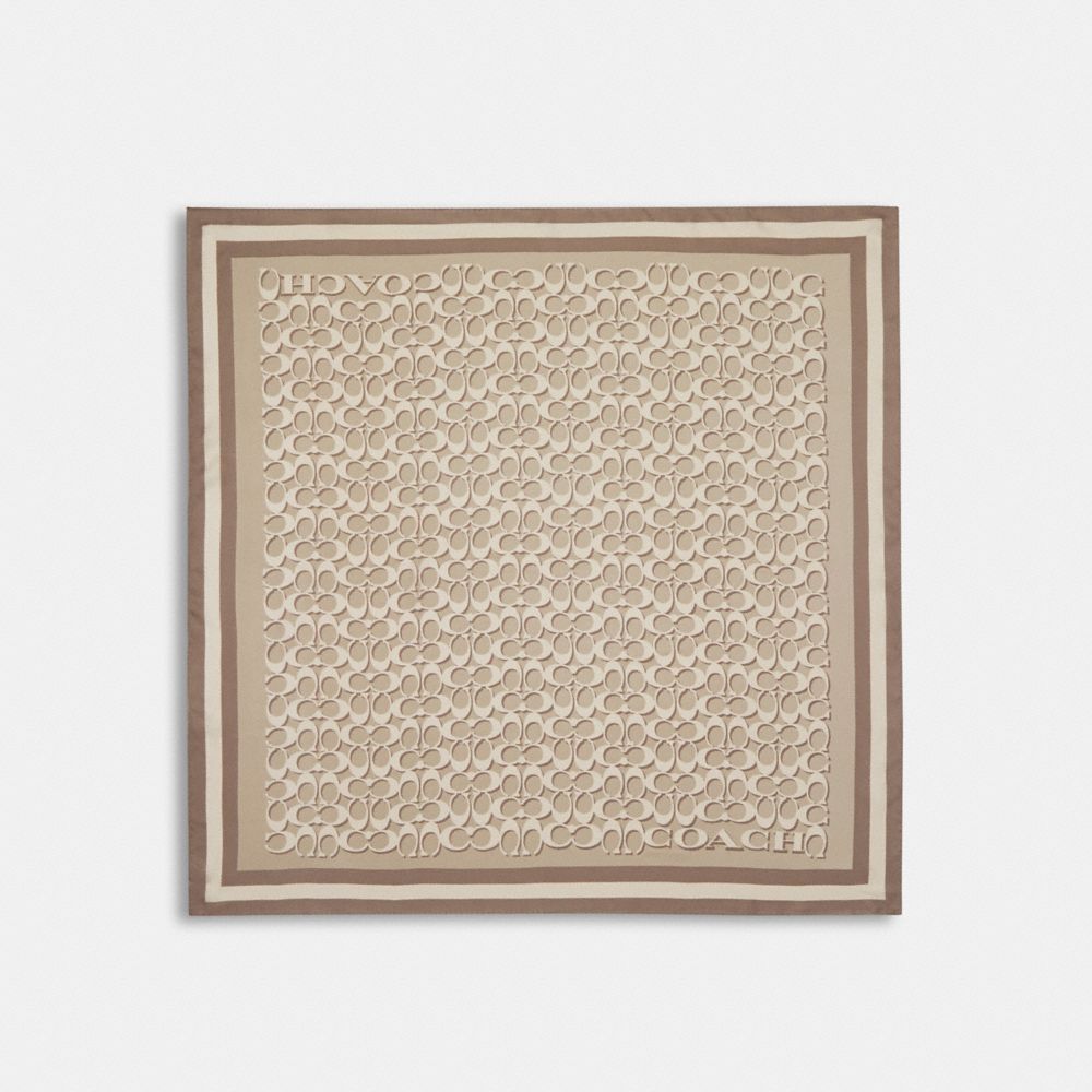 Wrap yourself in elegance with the Signature Print Silk Square Scarf. This large silk scarf will be a versatile piece in your wardrobe—perfect for draping around your neck, tying on your bag or styling as a headband. Add this silk square scarf to any look for a boost of color and charm.