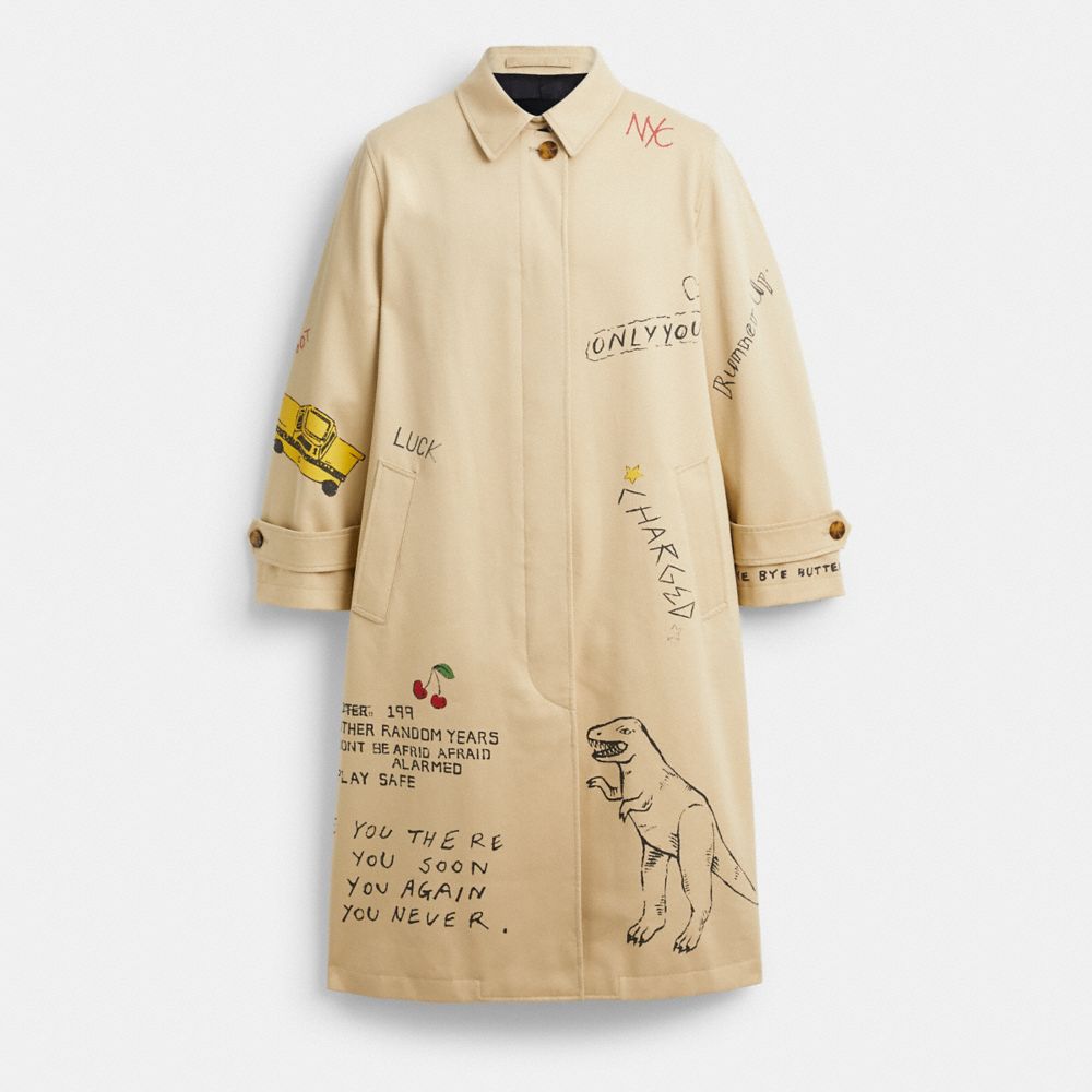 Perfect for transitional weather, this relaxed-fit balmacaan is crafted of cotton featuring our Coach Sketch print, a playful doodle motif of whimsical drawings and phrases inspired by artistic notebook scribbling. Detailed with slip pockets and a hidden button closure, it’s finished with belted sleeves and a back vent for added mobility.