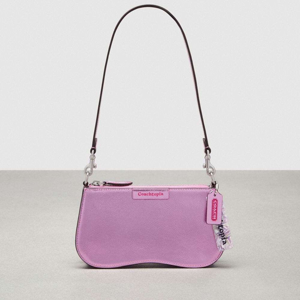 Glam on the go: the Small Wavy Shoulder Bag is a sleek shoulder bag that fits under your arm. Complete with a wavy bottom edge, it comes with a short strap, zip-top closure, interior card slots and dog leash clips (so you can remove the strap to wear as a wristlet or switch straps to wear as a crossbody). Born to stand out, this version is crafted in metallic Coachtopia leather (made with at least 50% recycled fibers from leather scraps).