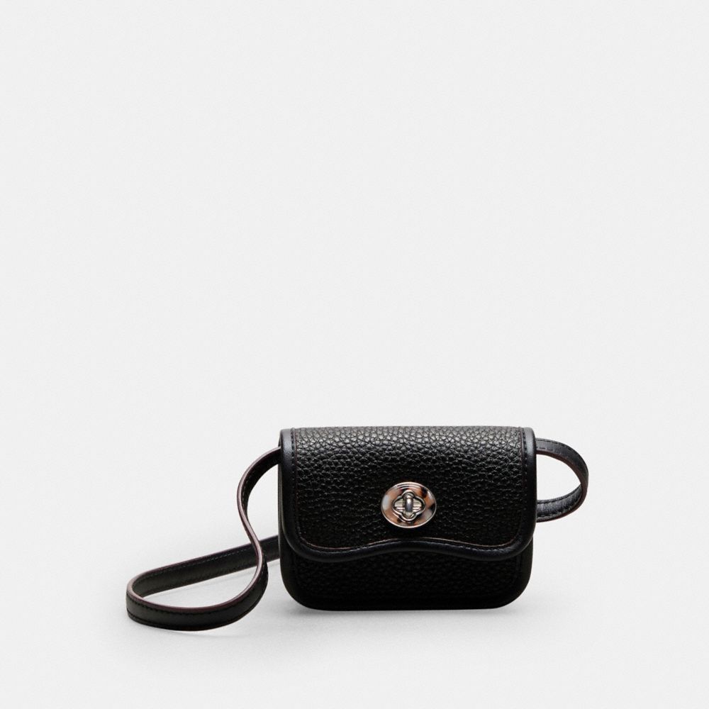 Made for change: the Wavy Wallet is a mini wallet with a removable shoulder strap and turnlock partially made with recycled acrylic plastic—not just splendidly swervy but perfectly sized for carrying coins, notes and cards. This version comes in pebbled Coachtopia leather (crafted with at least 50% recycled fibers from leather scraps).