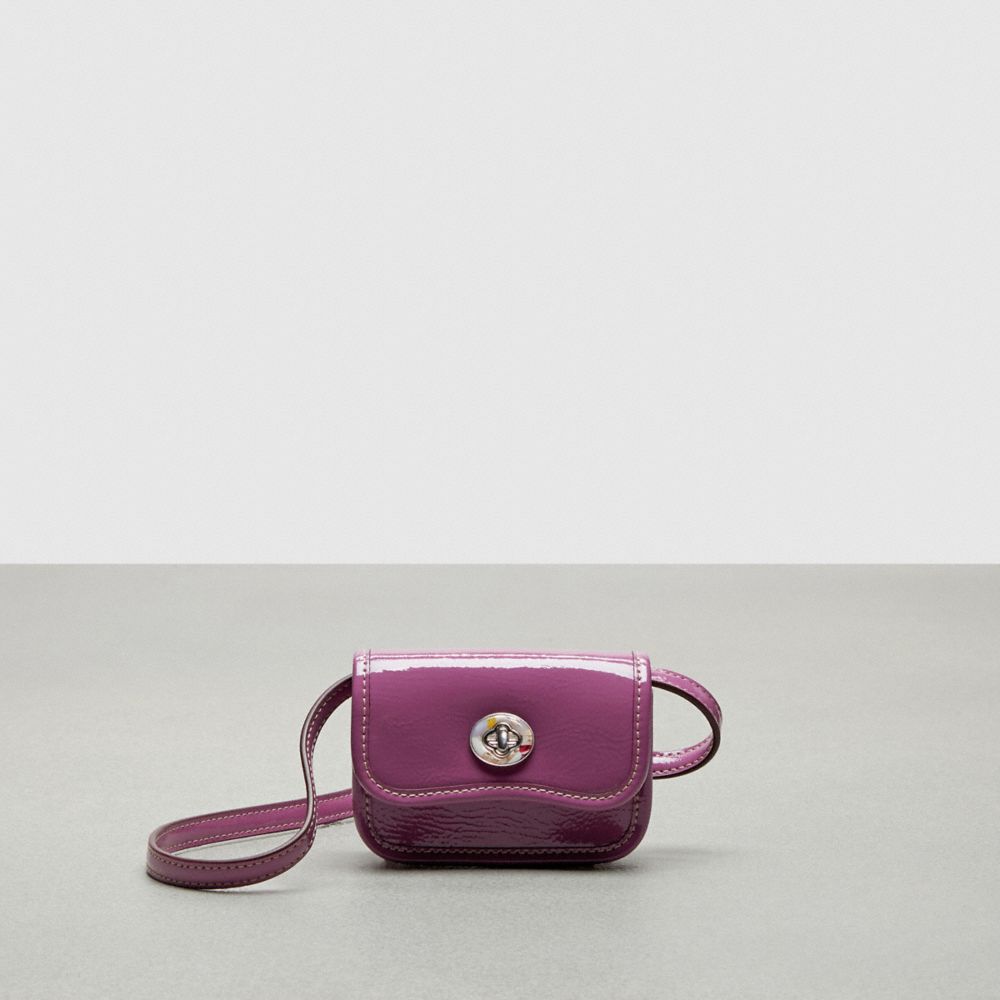 COACH®,Wavy Wallet In Crinkle Patent Coachtopia Leather,Crossbody,Plastic,Piping,Casual,Purple,Front View