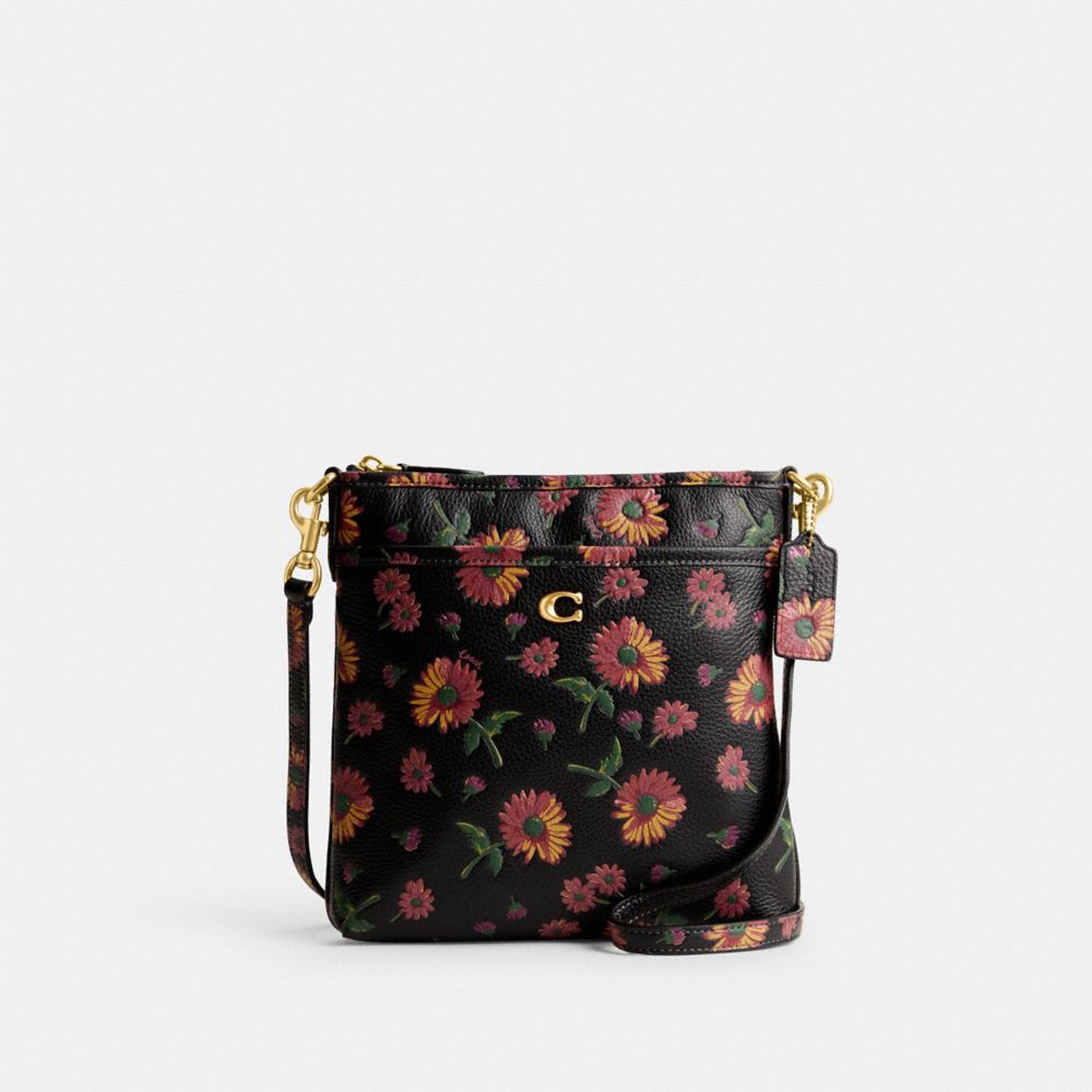 Strike a posey. A bright floral motif is printed on our plush Polished Pebble Leather.