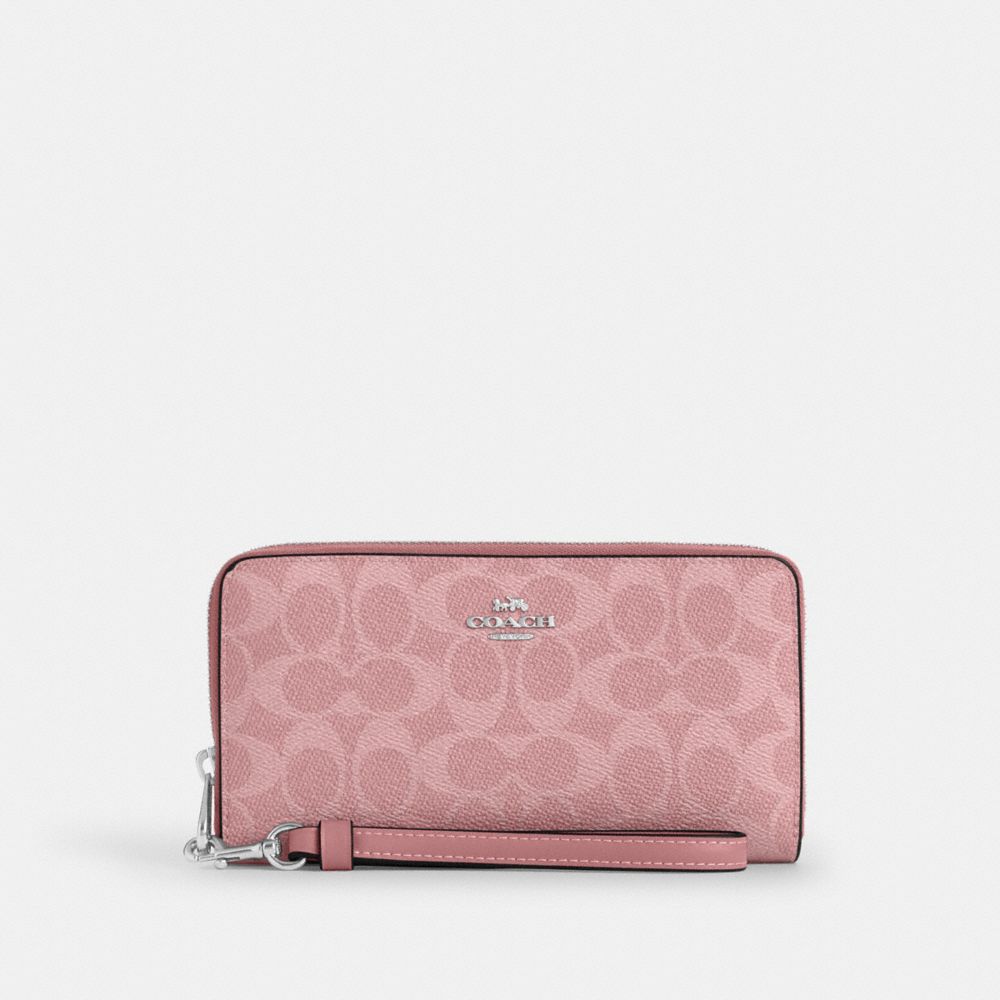 COACH®,LONG PORTEFEUILLE À FERMETURE ÉCLAIR SUR TOUT LE TOUR EN TOILE EXCLUSIVE,Toile exclusive,Sv/Rose poudré,Front View