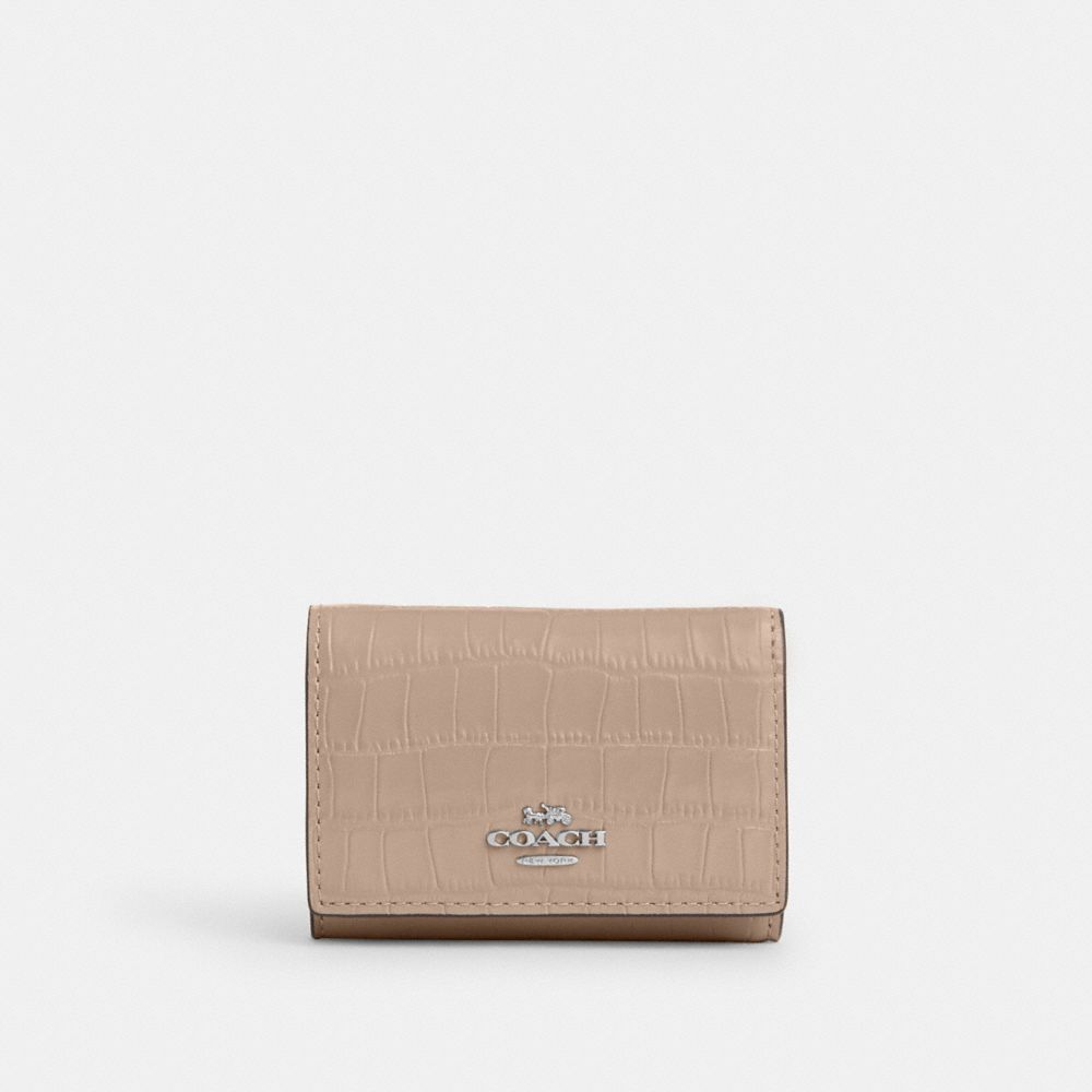 COACH®,MICROPORTEFEUILLE,Cuir innovant,Argenté/Pierre,Front View