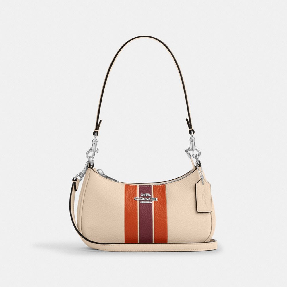 COACH®,MINI SAC BANDOULIÈRE TERI À RAYURES,Argent/Ivoire multi