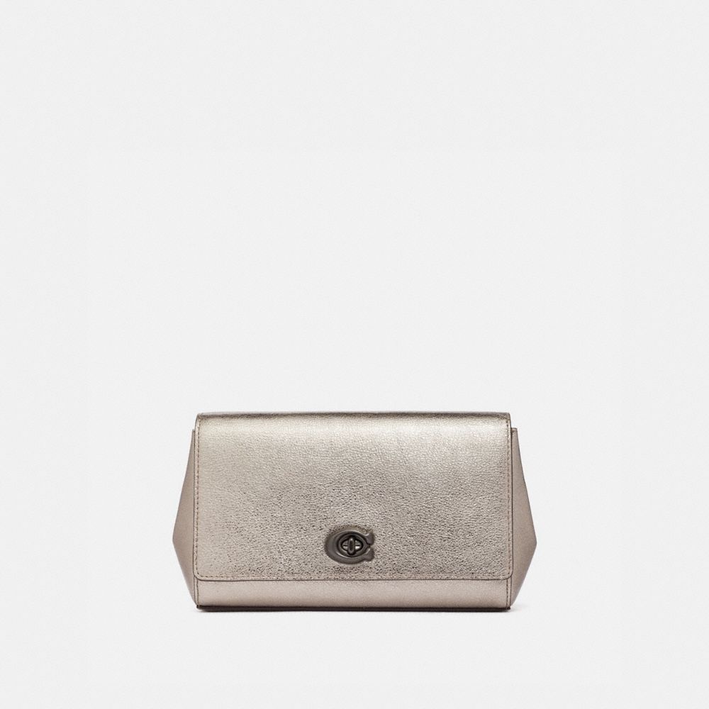 Get your glam on. A bright metallic finish gives our subtly textured leather a shimmery glow.
