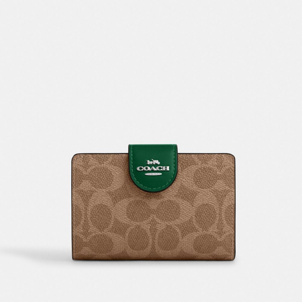 COACH®,PORTEFEUILLE MOYEN À FERMETURE ZIPÉE D’ANGLE EN TOILE EXCLUSIVE,Toile exclusive,Sv/Marron orangé/Shamrock,Front View