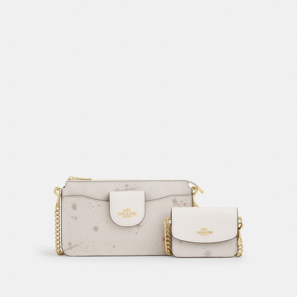 COACH®,SAC BANDOULIÈRE POPPY AVEC IMPRIMÉ ÉTOILE,Cuir innovant,Or/Craie Multi