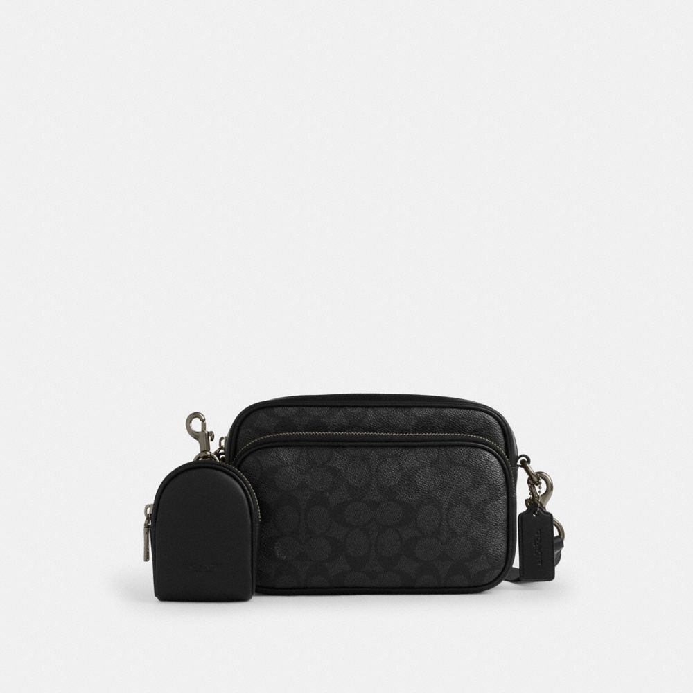 COACH®,SAC BANDOULIÈRE FINLAY EN TOILE EXCLUSIVE,Bronze industriel/Anthracite/Noir,Front View