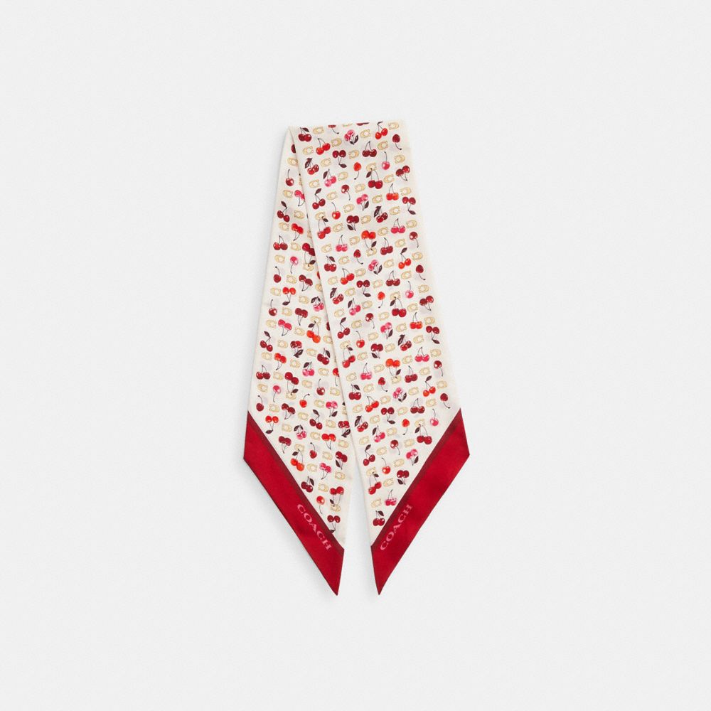 Foulard Large Et Fin En Soie Avec Imprimé à Cerises Et C En Relief