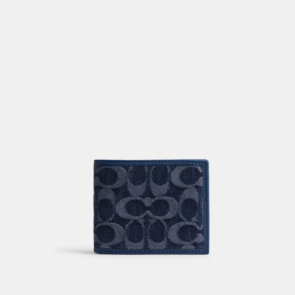 Ce portefeuille mince en denim signature comprend six fentes pour cartes et un compartiment à billets pleine longueur et se glisse aisément dans une poche.