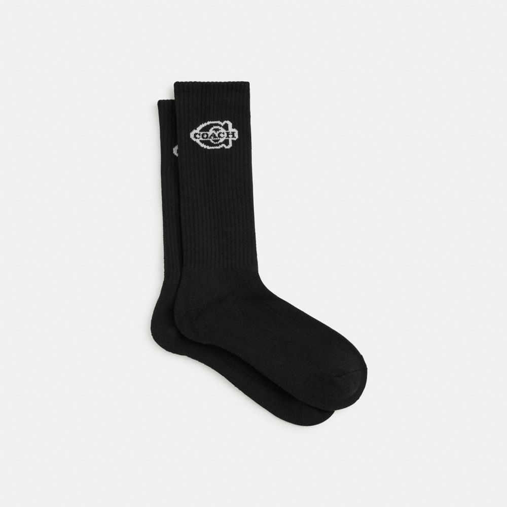 COACH®,CHAUSSETTES MI-MOLLET SOHO,Noir,Front View