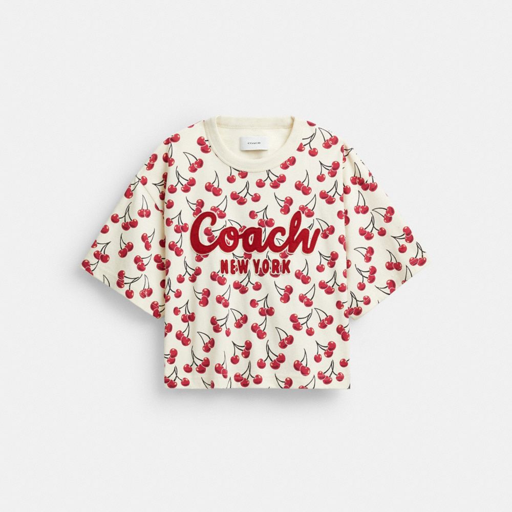 T-shirt court avec signature manuscrite et motif cerise en coton biologique
